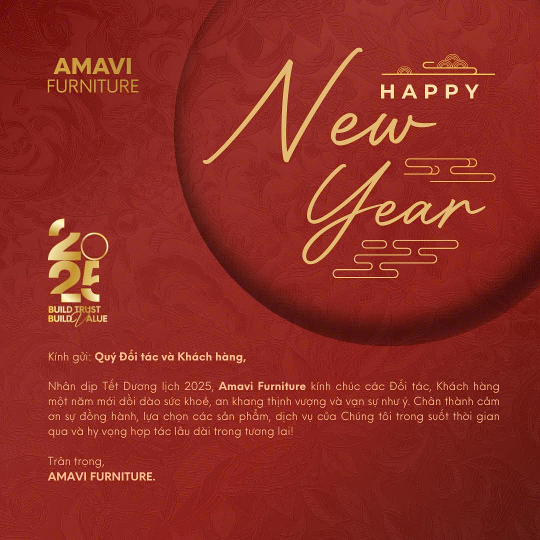 Nhân dịp Tết Dương lịch 2025, Amavi Furniture xin gửi đến Quý Đối tác và Khách hàng một năm mới dồi dào sức khỏe, an khang, thịnh vượng và thành công rực rỡ.