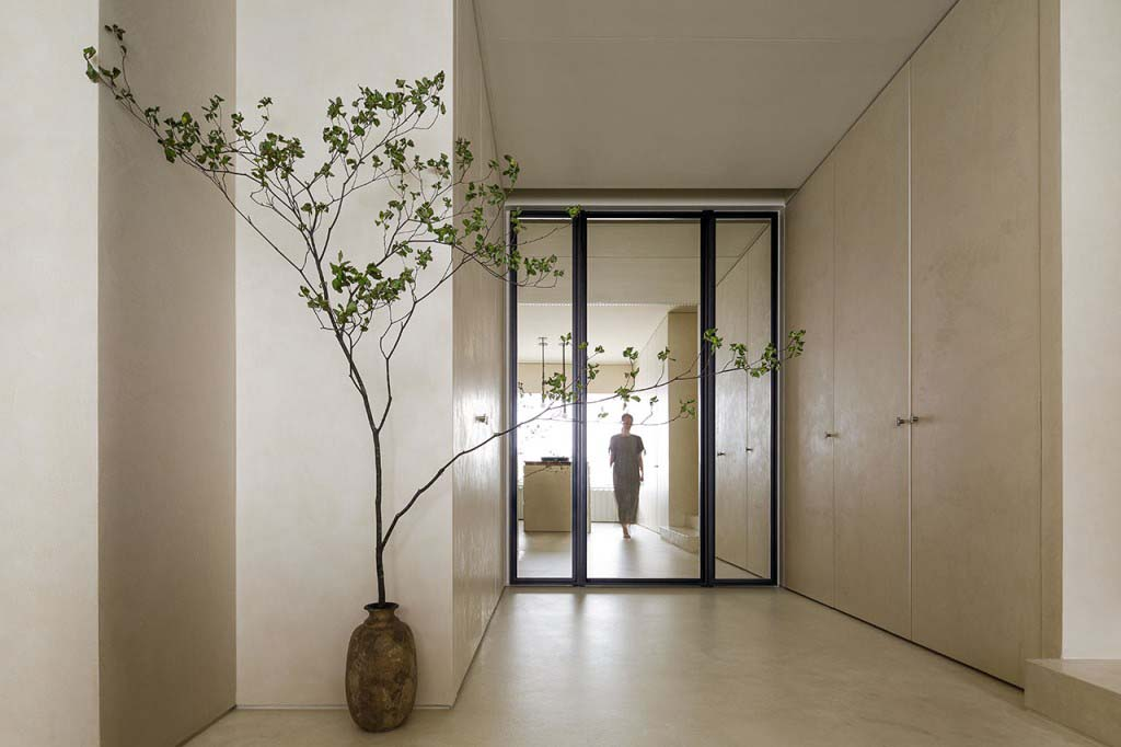 Thô sơ và tối giản là hai nguyên tắc chủ chốt của phong cách Wabi Sabi. Và tất nhiên lối vào căn hộ đã phần nào thể hiện điều đó